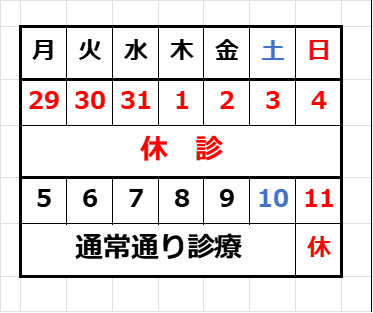 令和7年12月28日(日)~令和8年1月4日(日)は休診です。